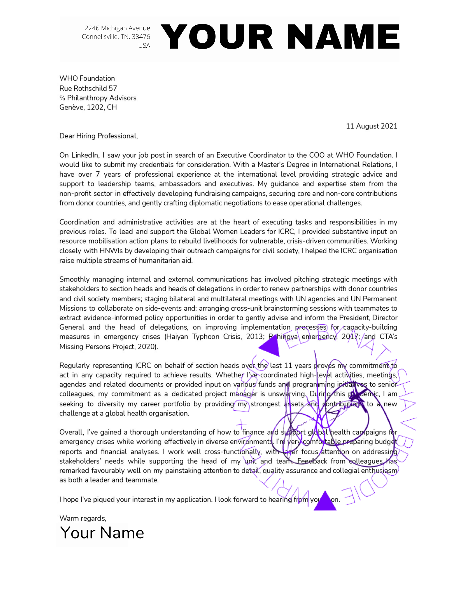✔ A compelling cover letter of your professional story